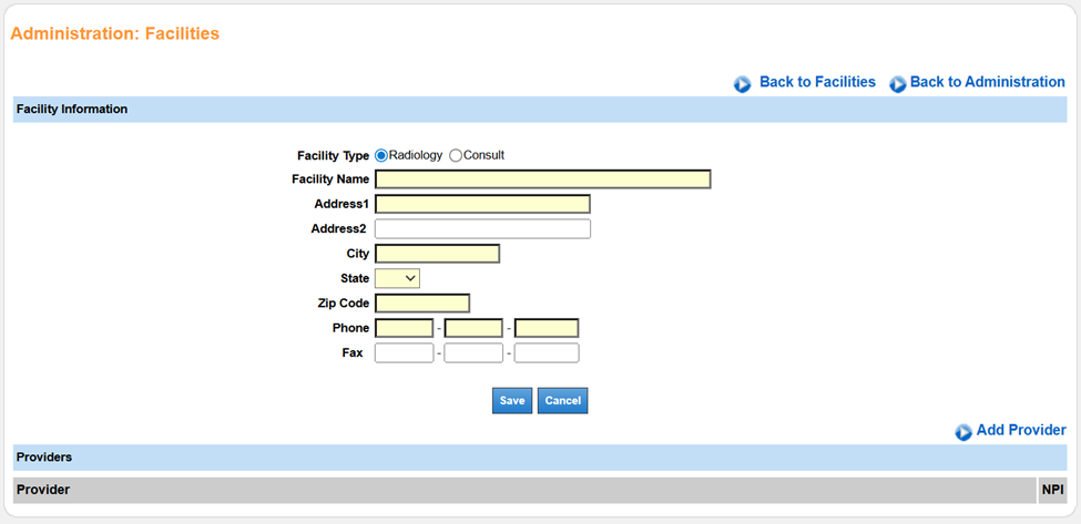 Facility setup is required for users to create a successful consult or radiology order. This article explains how to add facilities for a consult order and a radiology order. A provider may be associated to each consult or radiology facility that is added.