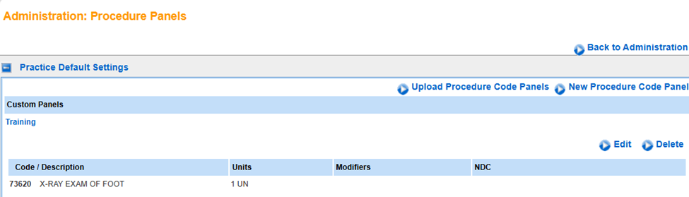- To begin a new procedure code panel, click New Procedure Code Panel.