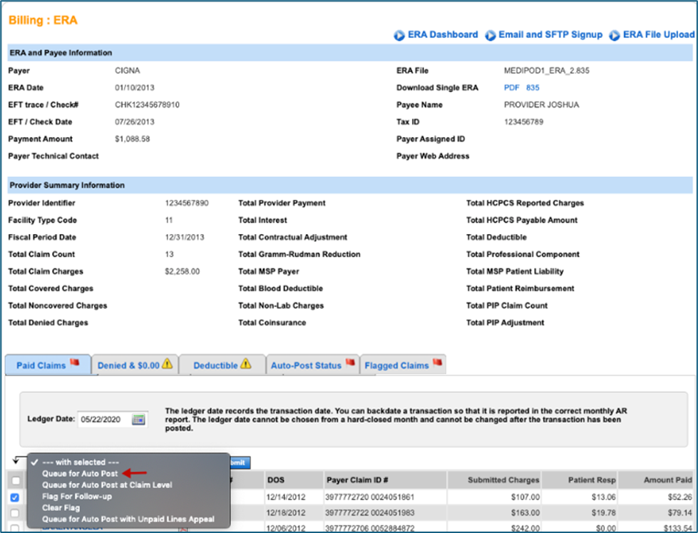 Note: If an ERA is flagged, it cannot be auto-posted. Clear the flag to reattempt.