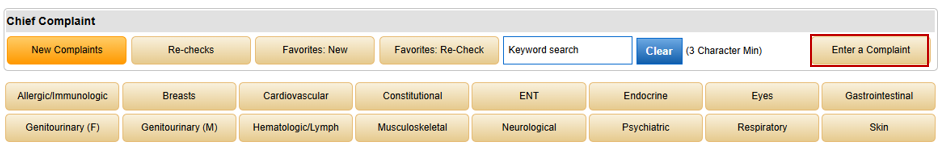 The Enter a Complaint feature is a quick way to enter a complaint in a free-text format, and is more effective than the custom form for completing the HPI elements.