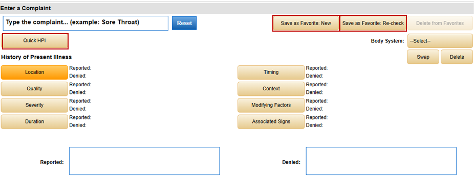 • Note: Save the complaint and HPI formatting as a favorite for faster documentation in the future.