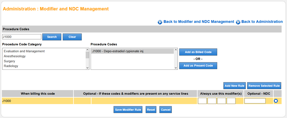 Enter NDC Codes from the Modifier and NDC Management Feature