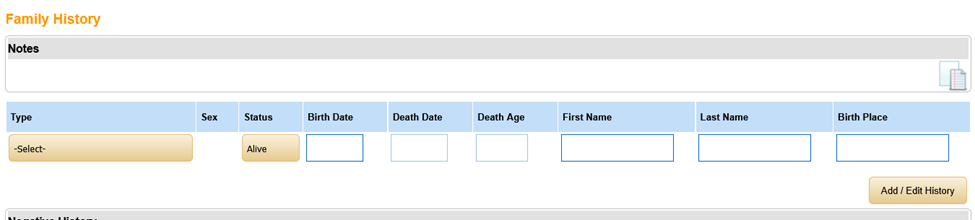 - Click Add/Edit History to add the family member’s medical history.