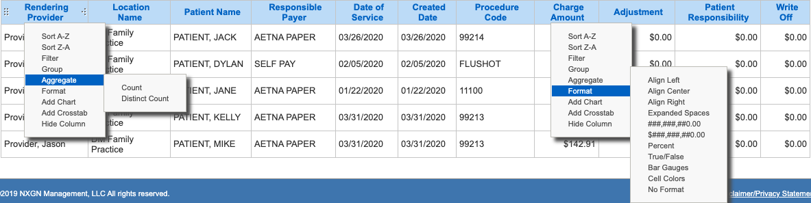 - Select the Grouping Column. In this example (Date of Service), select year, quarter, month, or day; else, it will group by day.